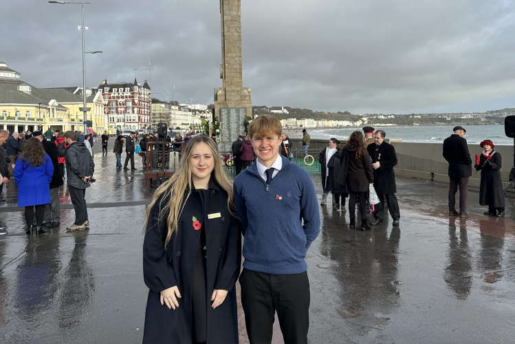 Our Head Girl, Stella, and Head Boy, Guy, represented Ballakermeen with dignity and respect at the Douglas Remembrance Ceremony on Sunday, despite the heavy skies overhead.